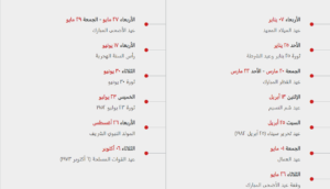 – السبت 25 أبريل: عيد تحرير سيناء.