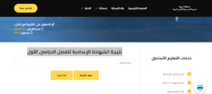 اختيار تبويب نتيجة الشهادة الإعدادية للفصل الدراسي الأول.