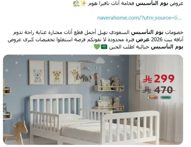 شركة نافيرا هوم أطلقت تخفيضات على قطع مختارة من أثاث غرف الأطفال بأسعار منافسة تبدأ من 299 ريالا بدلاً من 470 ريالا، مع تقديم خيارات تقسيط ميسّرة لتحسين تجربة التسوق.