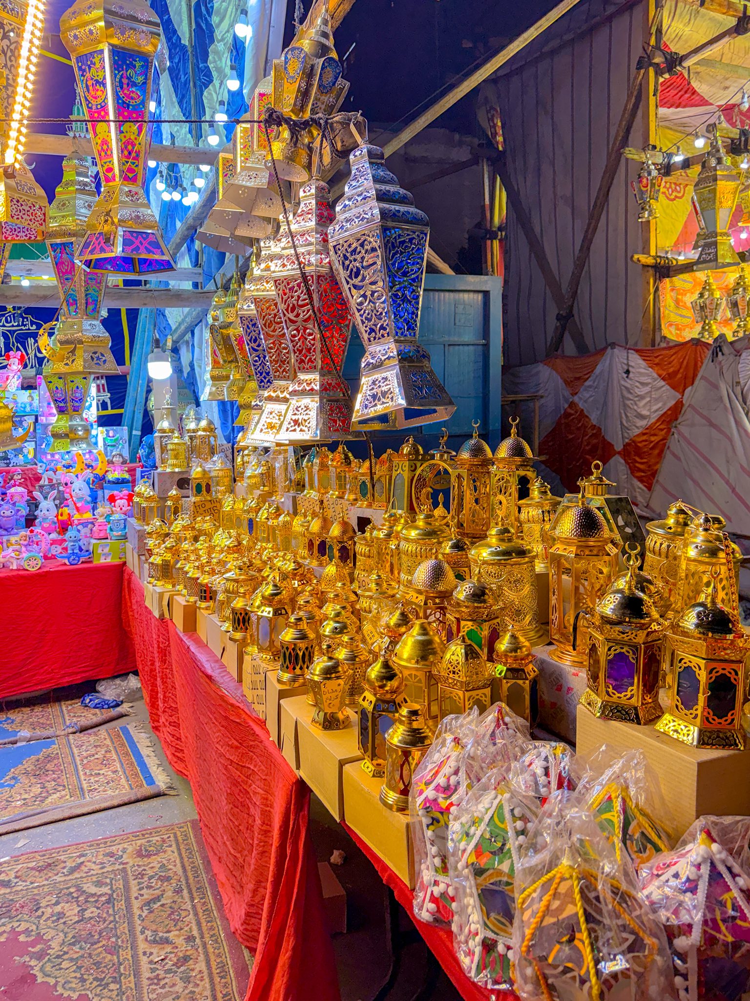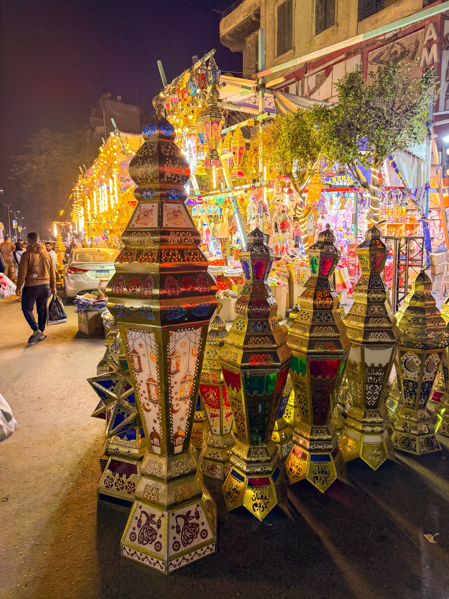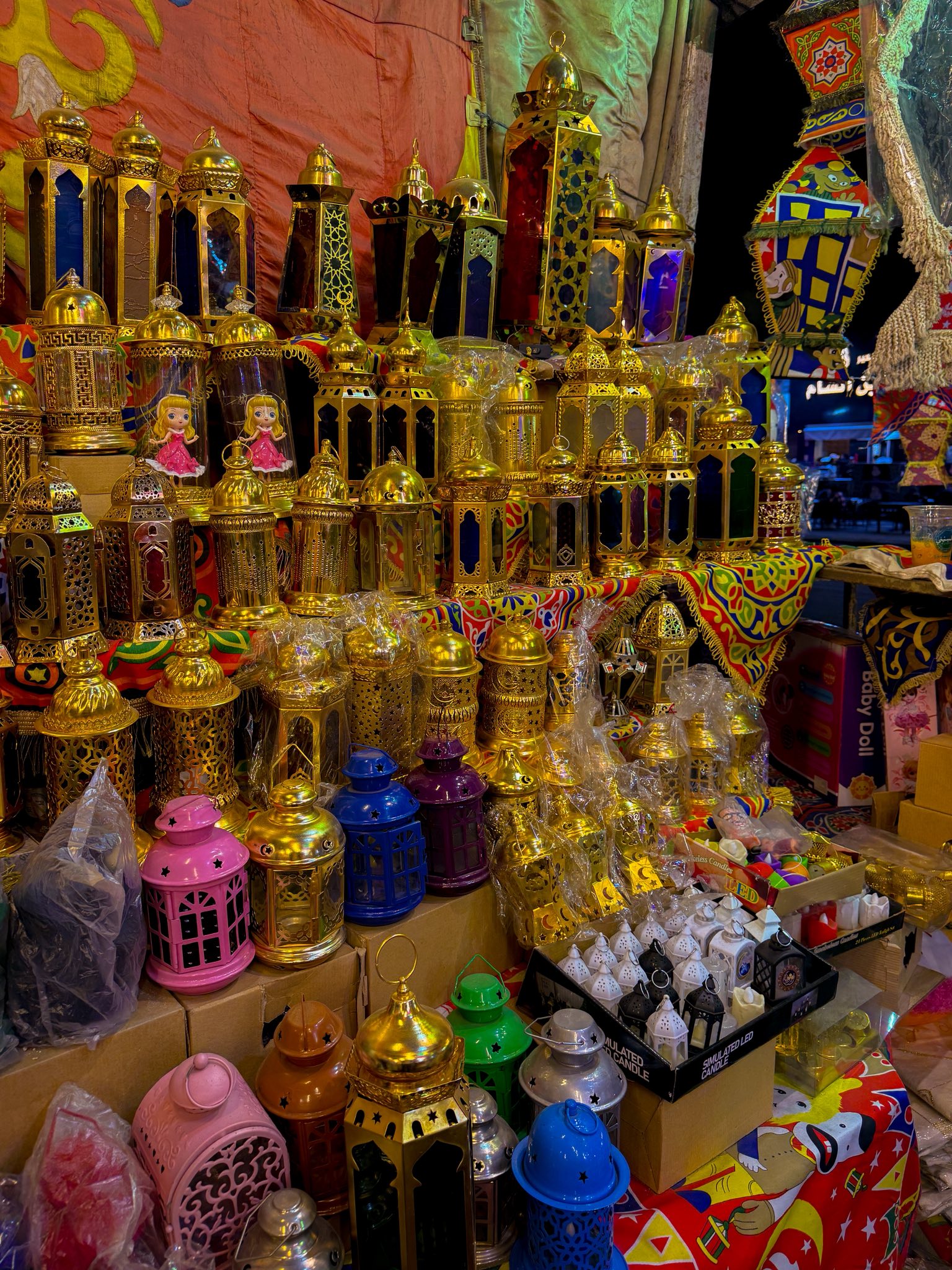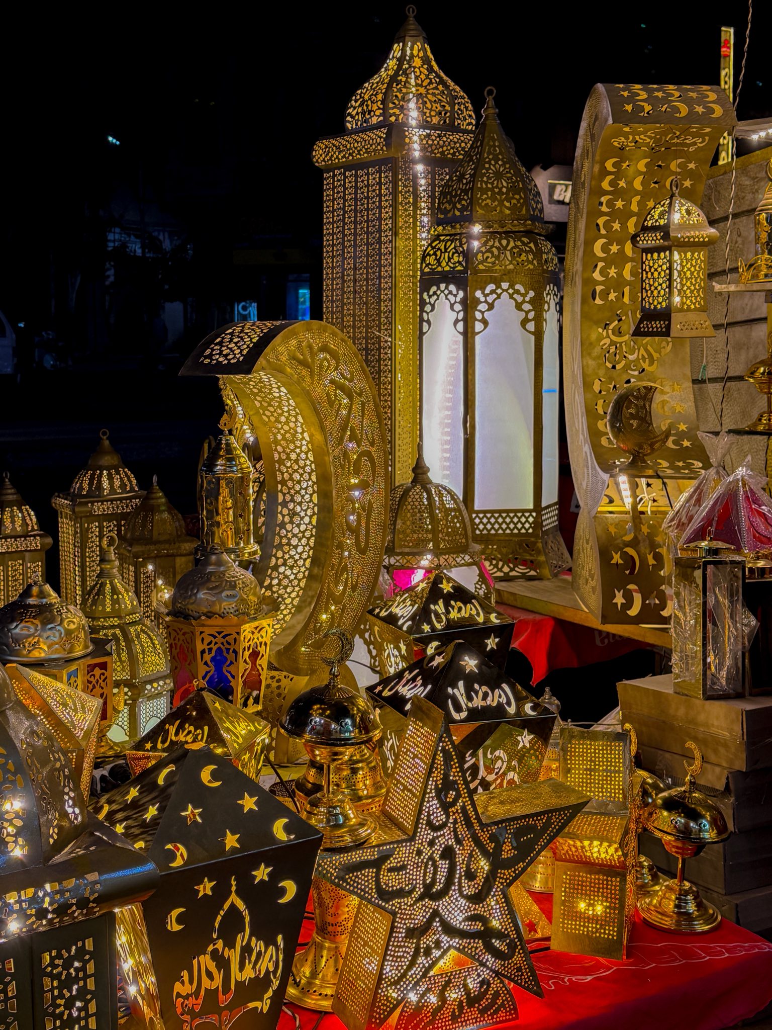 وتبدو الفوانيس التقليدية، بجاذبيتها وبهائها، متصدرة واجهات المحال ومداخل المنازل، في مشهد يبرهن على تمسك المصريين بجذورهم وعاداتهم الأصيلة.