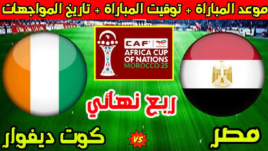 متى مباراة مصر و كوت ديفوار في كأس أمم إفريقيا ؟