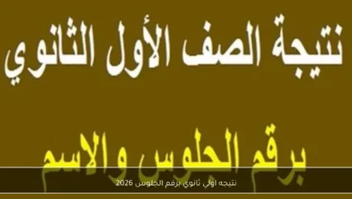 يترقب الجميع بفارغ الصبر إعلان نتيجة الصف الأول الثانوي برقم الجلوس 2026 ، وذلك من خلال الرابط الرسمي الخاص بكل…